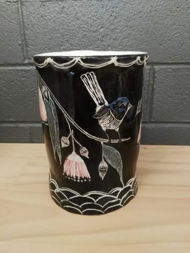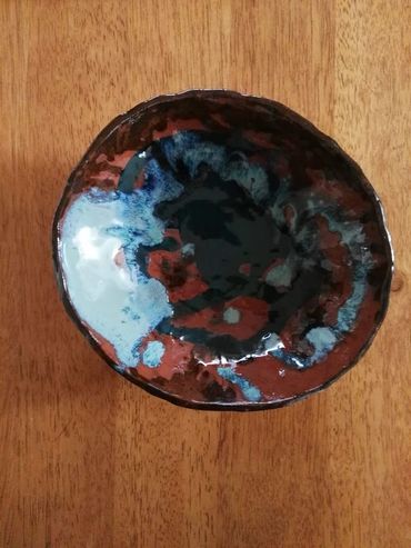 Inspiration for this piece was finding an amazing mud nest of a wasp made with different coloured clay and soil.