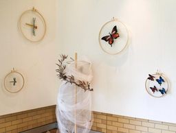 Similar to the "Art Dresses" during the exhibition artist workshops "Insects" will be created (neddle felted, freemotion machine embroidered and appliqued) then stitched or pinned to the Tulle dress to embellish it.