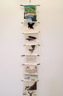 A second sample of textile panels that has been freemotion machine embroidered, appliqued and handpainted by the artists