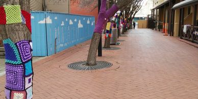 Yarnbombing project at Port Adelaide down Annie's Lane. Completed in 2020 for SALA festival in Adelaide.