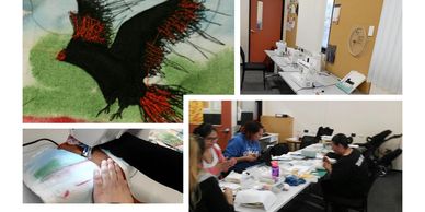 Freemotion Machine embroidery, applique and felt making were taught at these workshops. The end result was an exhibition at the John Harvey Gallery at Salisbury City council building.