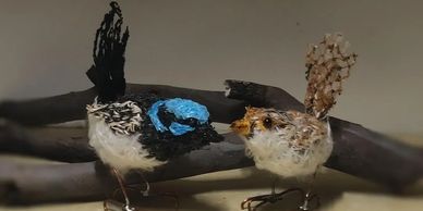 I have been teaching people how to make birds from Marine and land debris for the last 2 years. I use copper wire from old electrical cables as the frame. Old fishing net and fibres from old ropes are upcycled to create these little birds.